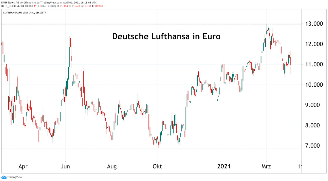 Die durchschnittlichen Erwartungen der Analysten liegen derzeit 18022021 bei 614 Euro pro Aktie. Das durchschnittliche Kursziel liegt für die Lufthansa-Aktie bei 754 EUR.