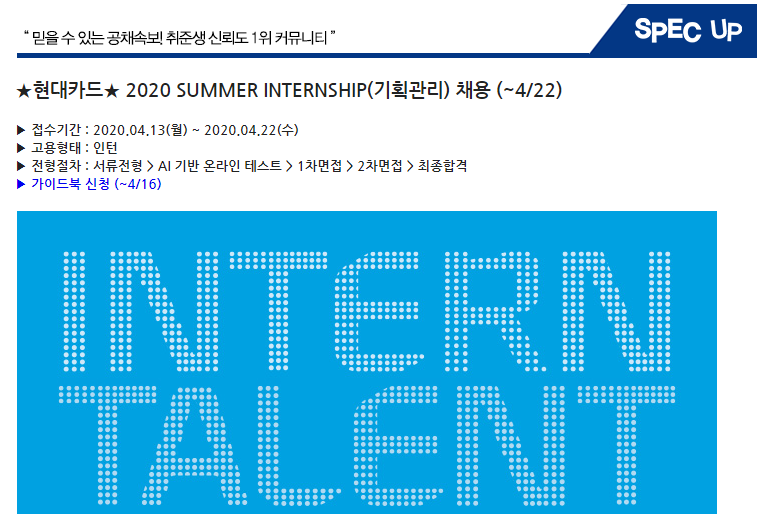 현대카드 채용 기획관리 직군 하계 인턴 채용 4 22 네이버 포스트
