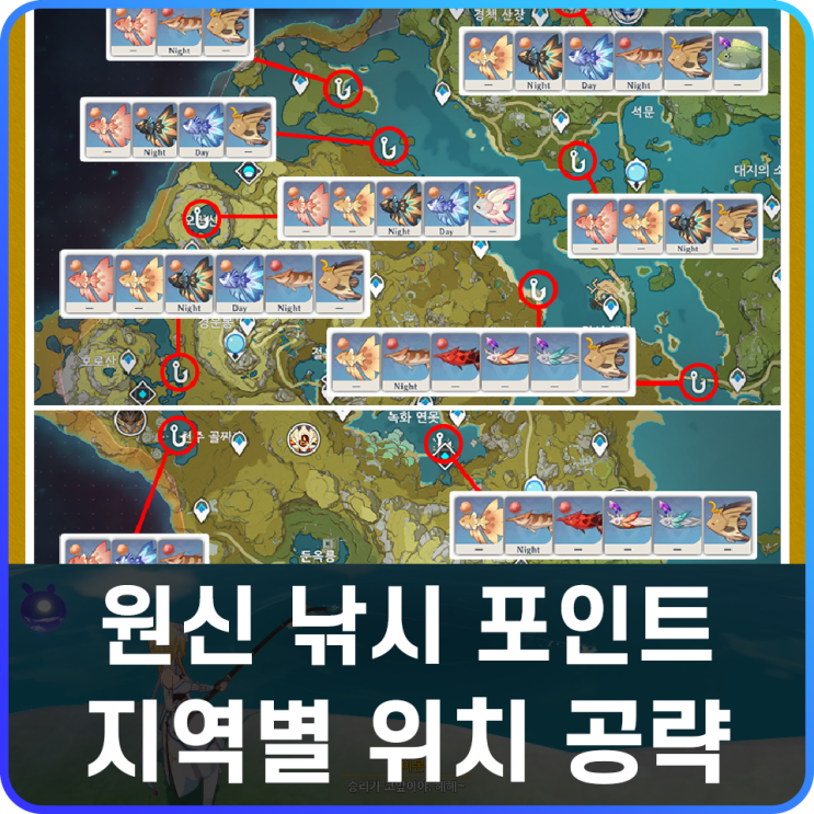 원신 낚시 - 원신 공략 낚시 가이드 구피 말총 위치 원신 인벤 원신 인벤